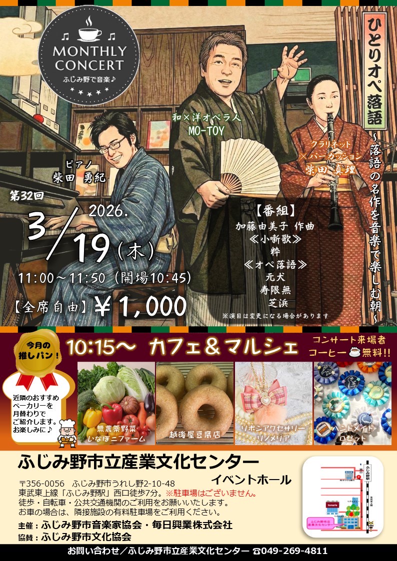 3月のマンスリーコンサートは、満を辞しての【オペ落語】の登場…