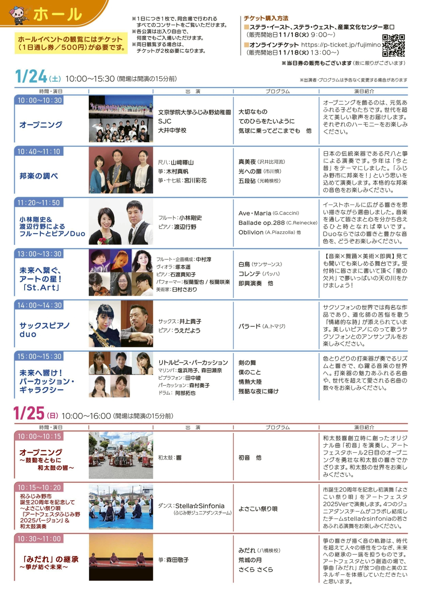 1/24(土)〜1/25(日)の2日間、ふじみ野ステラ・イーストで「音楽&アートの祭典 アートフェスタふじみ野2025」が開催されます!!